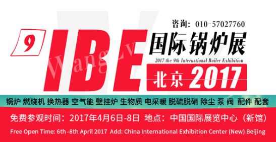 2017第九屆中國國際鍋爐展(簡稱“IBE鍋爐展”) 將於2017年4月6日至8月在,中國國際展覽中心(新館)隆重召開,本次大會是由北京旺旅展覽集團發起,中國房協、中國特種設備檢驗協會、全國鍋爐壓力容器檢驗協會、全國機械工程學會、上海壓力容器協會、台北市鍋爐壓力容器協會、中國鍋爐水處理協會相關專家及領導參與,環保部、發改委、工信部大力支持得到了相關政府管理部門、行業協會及暖通領域專業人士的大力支持和協助。“IBE鍋爐展”以其規模宏大、專業性強、參展廠商多、影響麵廣、展出產品檔次高,展出效果好,在業界聲譽卓著,被譽為“IBE鍋爐第一展”。屆時大會將會如期隆重舉辦,聲勢浩蕩,產品眾多、各種節能鍋爐、燃煤鍋爐、有機熱載體鍋爐、循環流化床鍋爐、電加熱鍋爐:電加熱鍋爐、燃燒器、燃燒器配件(油泵、燒嘴、壓力開關等)鍋爐水處理設備泵、閥門和風機、生物質鍋爐、燃氣鍋爐、電加熱產品、新型供暖產品及設備、節能技術、熱泵設備、脫硫脫硝及工業通風設備集中亮相。