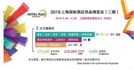 三大主題展區,全麵資源升級 2019新國際博覽中心再度全館齊放,打通行業壁壘,共享210,000平方米展出麵積,175,000觀眾資源,近3,000家優質海內外廠商。同期展會貫穿酒店工程、清潔產品、物業保潔、建築裝飾、商業智能化設備等行業,定位於中高端產品,為全球買家提供全係列解決方案和信息交流與分享的機會,為酒店、餐廳、商場辦公樓等各類商業空間提供服務及整體解決方案的一站式采購平台。