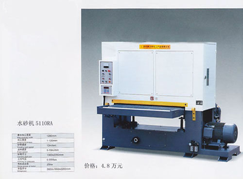 機機身鋼板折彎件采用無縫焊接、雙循環水霧噴淋、浸潤砂帶,電子光眼、過流保護器、電擊間保護器、限位器、氣缸等部件經防水處理,整機密閉性好。根據人造石樹脂膠粘性(650-1000cps)、彩色顆粒徑比分度值等參數精密設計,板材經本機高速精砂,有效清除幹砂間條紋、波浪紋、麻絲紋。克服了人工水磨效率低、鏡麵效果差,冬天不易操作的缺點。采用本機處理紋理石、珠光石、顆粒石等圖案立體感強,紋理逼真、光澤度高,是人造石加工的理想設備。