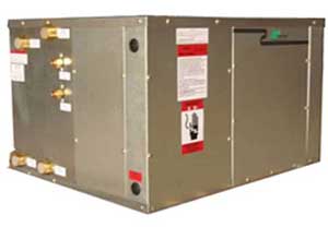 水-水式水環/水源/地源熱泵機組是以地能(地下水)或huo循xun環huan流liu動dong的de水shui或huo鹽yan水shui為wei主zhu要yao能neng源yuan,輔fu以yi電dian能neng,通tong過guo先xian進jin的de設she備bei將jiang地di下xia取qu之zhi不bu竭jie但dan不bu易yi利li用yong的de低di品pin位wei再zai生sheng能neng源yuan加jia以yi開kai發fa利li用yong,使shi其qi變bian為wei高gao品pin位wei能neng源yuan,同tong時shi向xiang室shi內nei未wei端duan供gong應ying冷leng(熱)水,來達到製冷(熱)目的。