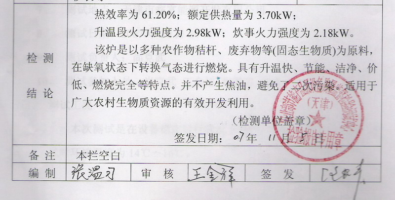 於是,我們投入大量人力、財力,一心為農民研製更省錢的能源、更geng高gao效xiao的de爐lu具ju。同tong時shi,也ye為wei農nong民min創chuang造zao更geng潔jie靜jing的de環huan境jing。在zai吸xi收shou國guo內nei外wai先xian進jin技ji術shu的de同tong時shi,公gong司si堅jian持chi走zou自zi主zhu研yan發fa的de道dao路lu,公gong司si產chan品pin技ji術shu擁yong有you自zi己ji的de知zhi識shi產chan權quan,擁yong有you三san項xiang國guo家jia專zhuan利li。公gong司si生sheng產chan的de生sheng物wu質zhi爐lu具ju,擁yong有you自zi己ji的de品pin牌pai、商標,並已通過農業部節能設備及產品監督檢驗測試中心等權威部門的檢測,其熱效率、煙塵排放等指標,大大優於國家標準。